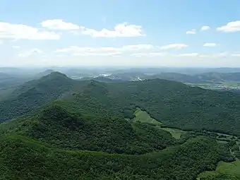 В горах над тропической располагается субтропическая по своему характеру, уже описанная в статье растительность, которая претерпевает некоторые изменения[42]. Стоит отметить концентрацию древовидных папоротников (циатеи) во влажных биотопах, тогда как маслина тяготеет к сухим. В низкогорных лесах, часть которых является тропическо-субтропическим экотоном, выделяются хвойные деревья из семейства подокарповых (дакрикарпус, дакридиум), а также канариум и шеффлера[43][44]. Осколки местных тропических лесов теперь окружены плантациями эвкалипта и гевеи бразильской. Уничтожение лесов приводит их к замещению вторичными саваннами[42].