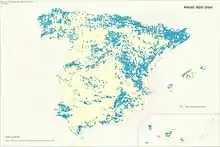 Испания — вторая страна Евросоюза по площади лесного фонда (26,27 млн гектаров, в том числе, 57 % лесного покрова и 43 % средиземноморского кустарника). Швеция занимает первое место (30,9 млн гектаров, 75 %); Финляндия — третье (23,3 млн гектаров); за ней следуют Франция 17,3 млн гектаров), Германия и Италия (11 млн гектаров), Польша (9,2 млн гектаров)[2][3].