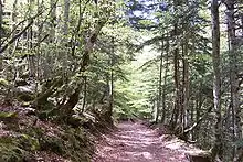 Коренные породы сосен, естественно растущие на полуострове — сосна крючковатая (Pinus uncinata) и сосна обыкновенная (Pinus sylvestris). Первая из них чаще всего встречается в сообществе с рододендроном ржавым (Rhododendron ferrugineum), черникой, Salix pyrenaica и другими кустарниковыми породами в субальпийском поясе Пиренеев. На наименее промытых, известковых почвах она, как правило, растет по соседству с можжевельником казацким, можжевельником обыкновенным и его подвидом hemisphaerica. На большей части Пиренеев эти леса составляют верхнюю границу лесных поясов и достигают высот до 2400 метров.