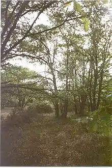 - Разреженный лес: преобладают лесообразующие виды, но проявляется в обилии кустарник и примешиваются новые древесные породы (падуб, клен, ясень). В подлеске зачастую преобладают бобовые.