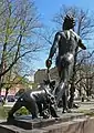 Скульпторы и архитекторы Выборга неоднократно обращались к образу медведя как одного из символов Карелии, благодаря чему в литературе появилось определение Выборга как «города семи медведей» (например, получили известность скульптуры медведей на фасаде дом купца Маркелова); помимо спутника юноши, в парке имеется и другая скульптура медведя.