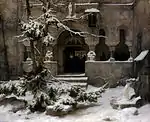 Монастырский двор в снегу.