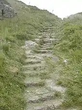 Ранний вид охранной сигнализации — подъездная лестница. Идея заключалась в том, что неожиданное изменение уровня лестницы помешает потенциальным грабителям, заставив их споткнуться в темноте и кого-нибудь разбудить.