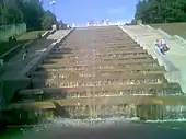 Изношенная лестница римского амфитеатра Пловдива, прошедшая многократный ремонт.
