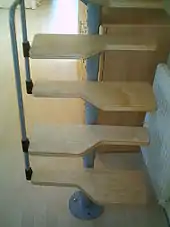 - Комбинированные лестницы (лестницы, в конструкции которых использованы комбинации различных материалов: металл-стекло; дерево-металл; металл-камень и т. п.)