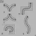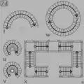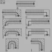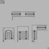 - n) трёхмаршевая дугообразная S-образная лестница с двумя четвертьплощадками