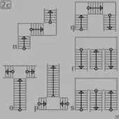 - r и s) трёхмаршевая E-образная лестница с полуплощадкой
