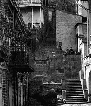 Построена в 1850 году на средства Тбилисского торгового общества по проекту губернского архитектора Т. Белого. Первоначально предполагалось перекрытие лестницы по всей длине опирающейся на колонны крышей, впоследствии не осуществлённое[4].