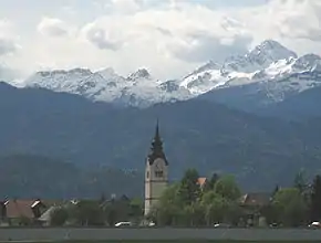 Один из древнейших населённых пунктов региона, впервые упомянутый в 1004 году наряду с Бледом и Бохинью. В центре Старого города находится трёхнефная церковь, посвящённая Вознесению Девы Марии — первоначально готическая постройка, украшенная снаружи фресками, но перестроенная в XVII веке в барочном стиле. Купол храма украшен фресками Фраца Еловшека[2].