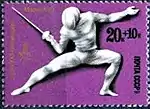 - Почтово-благотоворительный выпуск Игры XXII Олимпиады. Москва-80. На марке (ЦФА [АО «Марка»] № 5039) — спринтерский бег, многоцветная. Офсетная печать, перфорирована: комбинированная гребенчатая зубцовка 12½:12 (на каждые 2 сантиметра края марки приходится 12½:12 зубцов). В марочных листах 36 (6×6) и малые листы (кляйнбогены) по 20 (4×5) марок[8][36][37].