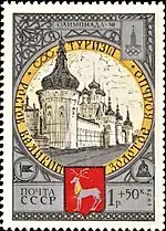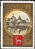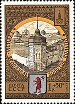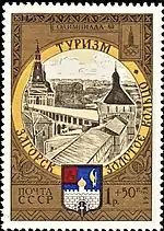 - Почтово-благотоворительный выпуск «Туризм под знаком Олимпиады в СССР»: «Туризм по Золотому кольцу». На марке (ЦФА [АО «Марка»] № 4912) — Ярославль. Спасо-Преображенский монастырь, многоцветная. Глубокая печать в сочетании с металлографией, перфорирована: комбинированная рамочная зубцовка 12:11½ (на каждые 2 сантиметра края марки приходится 12:11½ зубцов). В марочных листах 25 (5×5) и малые листы (кляйнбогены) по 16 (4×4) марок[6][28][29].