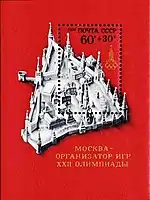 Почтовый блок «Москва — столица Олимпийских Игр»[Комм 2][9][10][11][3][14]. | 0,10 0,10 0,10 0,10 руб. |