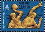 - Почтово-благотоворительный выпуск Игры XXII Олимпиады. Москва-80. На марке (ЦФА [АО «Марка»] № 4977) — гандбол, многоцветная. Офсетная печать, перфорирована: комбинированная гребенчатая зубцовка 12½:12 (на каждые 2 сантиметра края марки приходится 12½:12 зубцов). В марочных листах 36 (6×6) и малые листы (кляйнбогены) по 20 (4×5) марок[7][32][33].