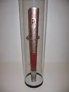 Олимпийский факел имел стандартные размеры (72 сантиметра в высоту и весом 985 граммов) и был сделан в традиционном китайском стиле. Факел был сконструирован так, чтобы он не гас при ветре в 65 км/ч и ливне в 50 мм/ч.