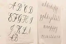 Каллиграфия известна как более жёсткий процесс, который требует изучения формы букв и сочетания толстых штрихов снизу с тонкими штрихами сверху. Этот стиль письма обычно создается перьями и чернилами. Некоторые каллиграфы и писатели говорят, что каллиграфия, созданная кистью, становится надписью или искусственной каллиграфией[16], но другие считают, что подход, используемый при начертании букв, более важен, чем применяемые инструменты[1][17].