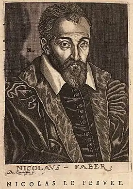 Николя Лефевр (1615—1669) — французский химик и алхимик, автор «Курса химии» (фр. Traité de la chymie, 1660). Родился в Седане. Впервые обосновал идею научности химии, разделив её на философский и фармакологический (ятрохимический) уровень. Задачe философской (теоретической) химии он усматривал в изучении превращения веществ («трансмутации элементов»). После 1660 года эмигрировал в Англию, где стал членом Лондонского королевского общества. Лефевр разработал первый способ промышленного получения серной кислоты[4]. Также в его трудах содержится подробное описание получения никотина.