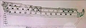 | Длина по килю | 130 французских футов (42,23 м) |