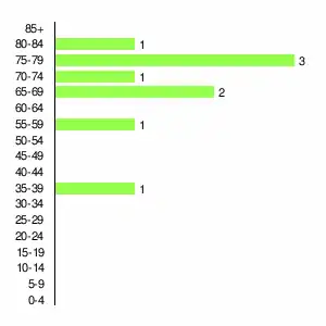 | Жителей | 307 | 456 | 378 | 205 | 62 | 36 | 21 | 18 | 9 |