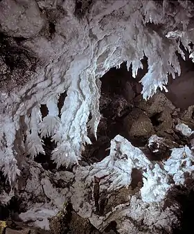 В пещере встречается множество разнообразных натёчных и кристаллических образований, как карбонатных (кальцит, арагонит), так и сульфатных (гипс и пр.). Многие формы уникальны, например гигантские гипсовые «люстры» размером до 6 м.