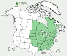 В природе ареал вида охватывает восточные районы Северной Америки: от штатов Мэн, Онтарио и Саскачеван на севере, до Флориды и Канзаса на юге[3].