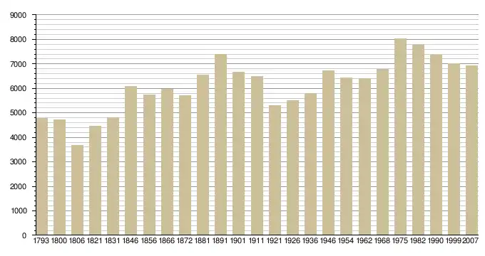 | 1793 | 1800 | 1806 | 1821 | 1831 | 1836 | 1841 | 1846 | 1851 | 1856 | 1861 | 1866 |