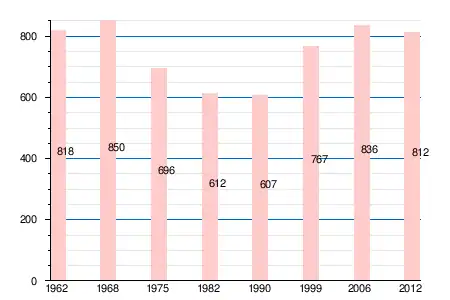 | 1962 | 1968 | 1975 | 1982 | 1990 | 1999 | 2006 | 2011 | 2012 |