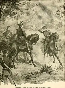 Основываясь на разведданных Ли, армия Скотта 7 августа атаковала и разбила мексиканскую армию в сражении при Чурубуско[31]. 6 сентября на военном совете Скотта было принято решение штурмовать Мехико. Рекогносцировка перед наступлением была доверена Ли, так как его вышестоящий офицер, майор Смит, в это время заболел. В ходе рекогносцировки 8 и 9 сентября Ли пришёл к мнению, что есть два пути к Мехико: с юга, под обстрелом орудий форта Чапультепек, или же после предварительного штурма Чапультепека. 11 сентября на совете Скотт высказался за штурм форта, Ли и другие офицеры были против. Решено было всё же атаковать Чапультепек[32].