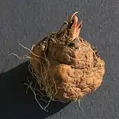 Многолетнее травянистое клубнелуковичное[6] растение высотой обычно около 60 см[4] (иногда до 200 см)[2].