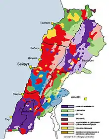 Население Ливана — более 6 миллионов человек[7]. Республика выделяется чрезвычайным религиозным разнообразием. В Ливане действует особая политическая система, так называемый конфессионализм, подразумевающий организацию государственной власти в соответствии с делением общества на религиозные общины.