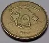 250 фунтов | номинал «٢٥٠/ليرة» на фоне ливанского кедра, фрагмента герба; вверху полукругом «مصرف لبنان»; внизу год чеканки; по кругу бусовый ободок | номинал «250/LIVRES» в бусовом круге, поверх многократно повторенной «BANQUE DU LIBAN»; вверху год чеканки; внизу полукругом «BANQUE DU LIBAN»; по кругу геометрический орнамент и бусовый ободок | рифлёный | Алюминиевая бронза | ø — 23,50 мм m — 5,00 г |