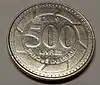 500 фунтов | номинал «٢٥٠/ليرة» на фоне ливанского кедра, фрагмента герба; вверху полукругом «مصرف لبنان»; внизу год чеканки; по кругу бусовый ободок | номинал «500/LIVRES» в бусовом круге, поверх многократно повторенной «BANQUE DU LIBAN»; вверху год чеканки; внизу полукругом «BANQUE DU LIBAN»; по кругу геометрический орнамент и бусовый ободок | рифлёный | Никелированная сталь | ø — 23,50 мм m — 5,00 г |