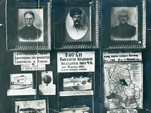 ![]() Фотоснимок стенда в Ливенском краеведческом музее, посвящённого событиям Ливенского восстания, сделанный в 1936 году | |||