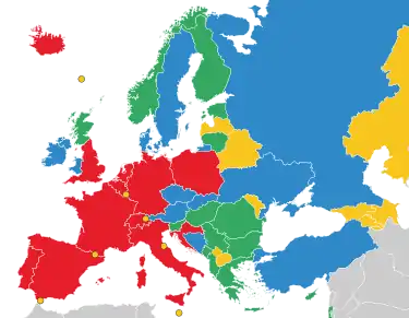 По политическим причинам сборные Армении и Азербайджана, а также России и Украины не могут играть в одной группе, но могут играть в одной лиге.