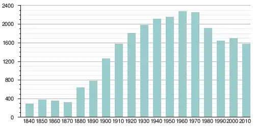 Из 793 домашних хозяйств 40,7 % представляли собой совместно проживающие супружеские пары (9,5 % с детьми младше 18 лет), в 8,7 % домохозяйств женщины проживали без мужей, в 3,3 % домохозяйств мужчины проживали без жён, 47,3 % не имели семьи. В среднем домашнее хозяйство вели 1,90 человека, а средний размер семьи — 2,56 человека. В одиночестве проживали 43,3 % населения, 22,1 % составляли одинокие пожилые люди (старше 65 лет)[8].