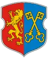 Барочный щит, рассеченный «в столб». В правом поле красного цвета расположен стоящий золотой лев, который повернут вправо, в левом голубом — два перекрещенных золотых ключаГербовый матрикул Республики Беларусь 30 мая 2002 г. № 85.