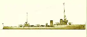| Артиллерийское вооружение | 150-мм/45 — 4 × 1 | 102-мм/60 — 5 × 1, 63,5-мм/40 — 1 × 1 |