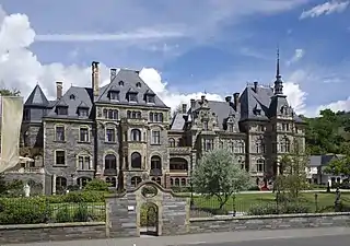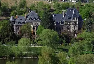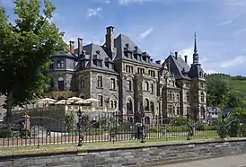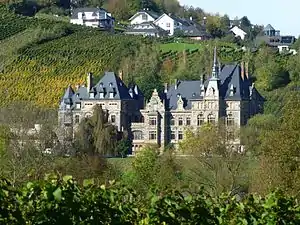![]() Главный фасад замка со стороны Мозеля | |||