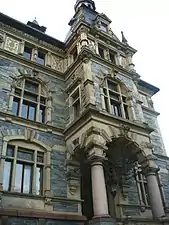 Отдельно стоит упомянуть ряд архитектурных украшений. Например, фигуры, изготовленные скульптором Петером Фуксом (1829—1898), который прославился своими работами в Кёльнском соборе. Не менее интересен главный фасад с барельефами, посвящёнными идеализированной теме промышленности и сельского хозяйства.