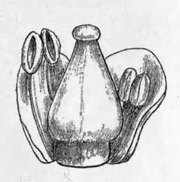 ![]() Цветок с двумя удалёнными листочками околоцветника крупным планом (фрагмент той же ботанической иллюстрации) |