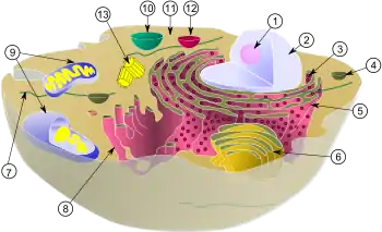 Лизосо́ма (от греч. λύσις — разложение и σώμα — тело) — окружённая мембраной клеточная органелла, в полости которой поддерживается кислая среда и находится множество растворимых гидролитических ферментов[1]. Лизосома отвечает за внутриклеточное переваривание макромолекул, в том числе при аутофагии; лизосома способна к секреции своего содержимого в процессе лизосомного экзоцитоза; также лизосома участвует в некоторых внутриклеточных сигнальных путях, связанных с метаболизмом и ростом клетки[2].