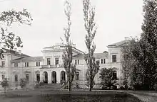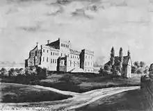 Усадебный дворец был возведён в 1770 году воеводой графом Юзефатом Зибергом. В середине XIX века был перестроен в неоготику, однако в 1861 году сгорел. Были утрачены родовые архивы и произведения искусства. В 1878—1880 годах дворец был восстановлен по проекту Вильгельма Неймана в соответствии с традициями античной архитектуры. Во время Первой мировой войны дворец был сильно повреждён. До наших дней сохранился лишь фрагмент стены.