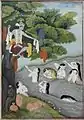 Юная [пастушка] восхваляет его и, увлеченная, любовно танцует с Хари в раса-лиле под свирель, сладким звукам которого вторит ряд браслетов, дрожащих от хлопанья в ладоши. — Хари развлекается здесь в игривой, веселящейся толпе юных, прелестны жен[6].
