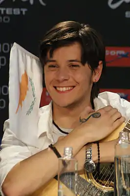 ![]() Джон Лилигрин на пресс-конференции перед выступлением на Евровидении 2010 | |