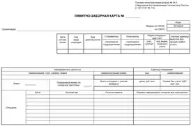| Лимитно-заборная карта | |