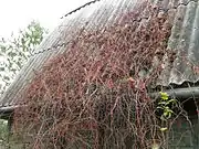 Слева направо: Листья, плоды и семена лимонника китайского. Лимонник осенью, на дачном доме | ||||||||||