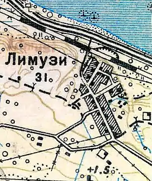 ЛИМУЗИ (ЛЕМУЗИ) — деревня Ораниенбаумского дворцового ведомства при колодцах, по левую сторону приморского просёлочного тракта в 17 верстах от Петергофа, число дворов — 15, число жителей: 27 м. п., 38 ж. п. (1862 год)[13]