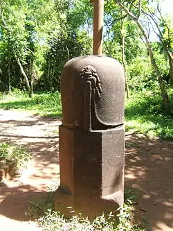 Лингам в храмах Тамилнаду и Юго-Восточной Азии чаще всего представляет собой цилиндр из тщательно отполированного камня с закруглёнными кверху углами, переходящего в середине в восьмигранную часть и книзу — в квадратную. Верхняя, цилиндрическая представляет Шиву, восьмигранная — влагалище или Вишну и квадратная — Брахму. Лингам внизу имеет проставку из цилиндрического камня, который защищает его от основания. Только цилиндрическая часть возвышается над основанием, которое имеет круговое или квадратное углубление, которое в свою очередь переходит в канавку-желобок-ручей, символизирующую женскую вагину.