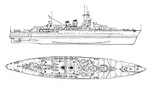 ![]() Схема линкора типа «Андреа Дориа» после модернизации |