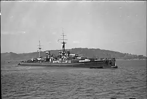 | Орудие | 13,5"/45 Mark V(H)[21] | 4"/50 BL Mark VII[22] | 3"/45 20cwt QF HA Mark I[23] |