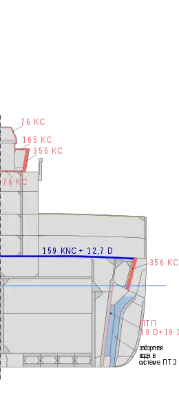 | Палуба над МКО | 102 | 82,5 | 82,5 | 140 | 140 | 108 |